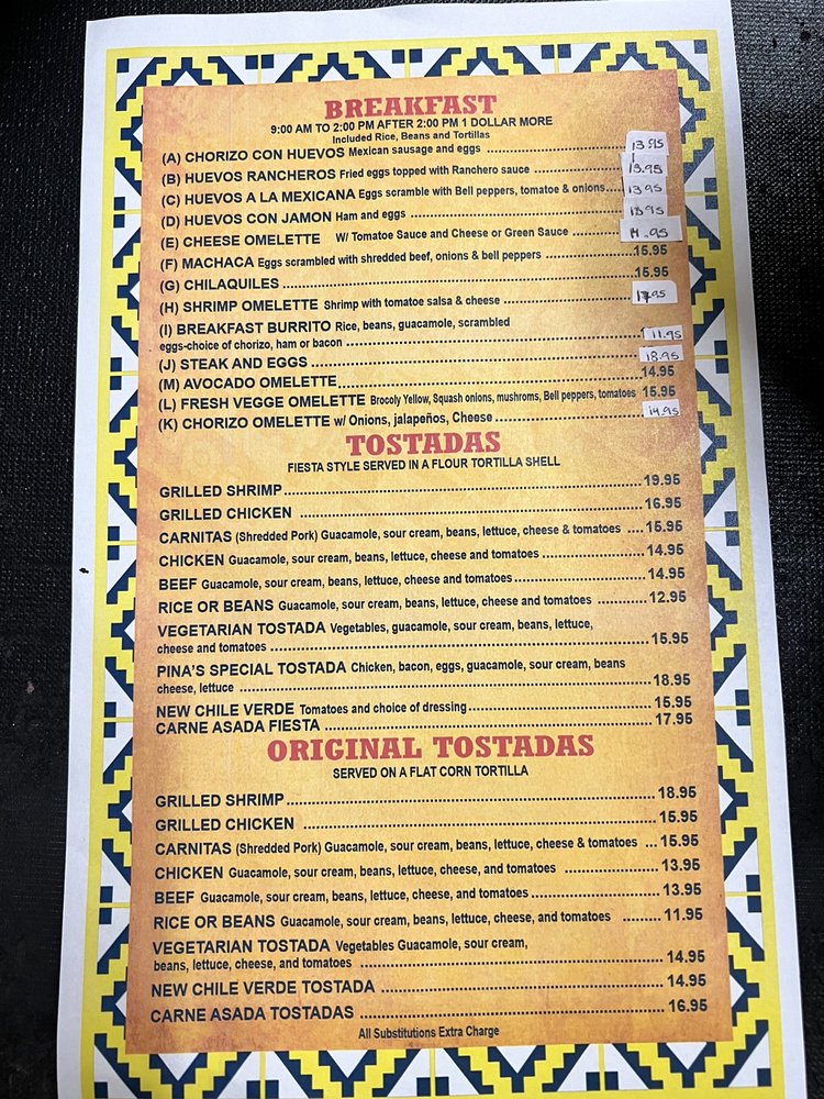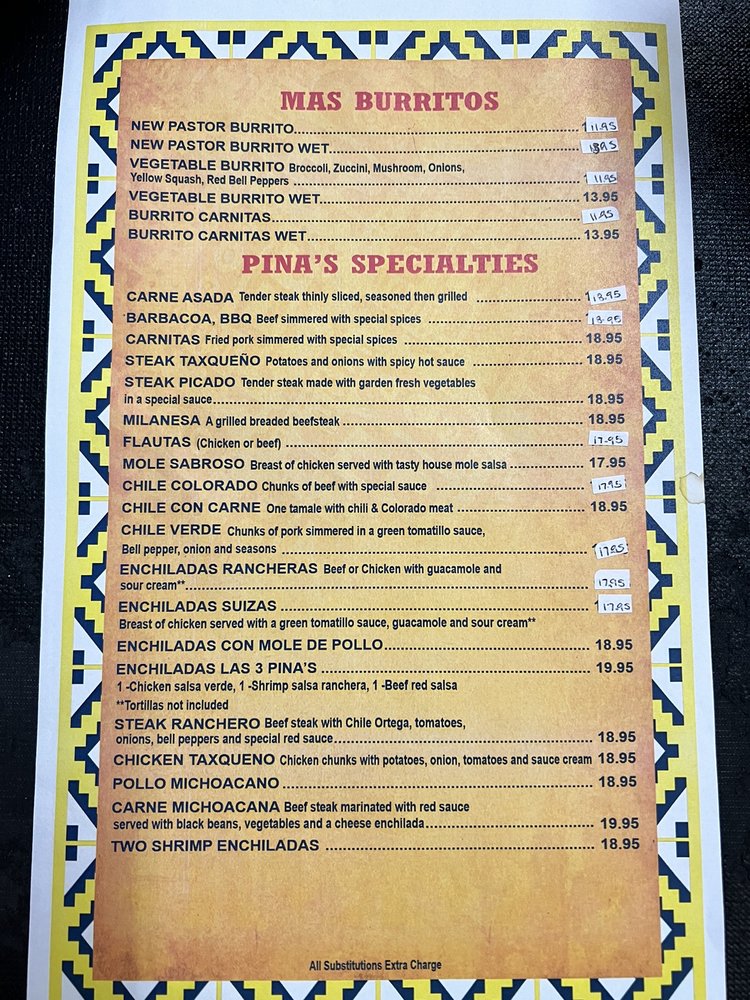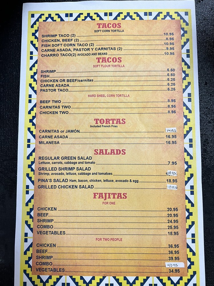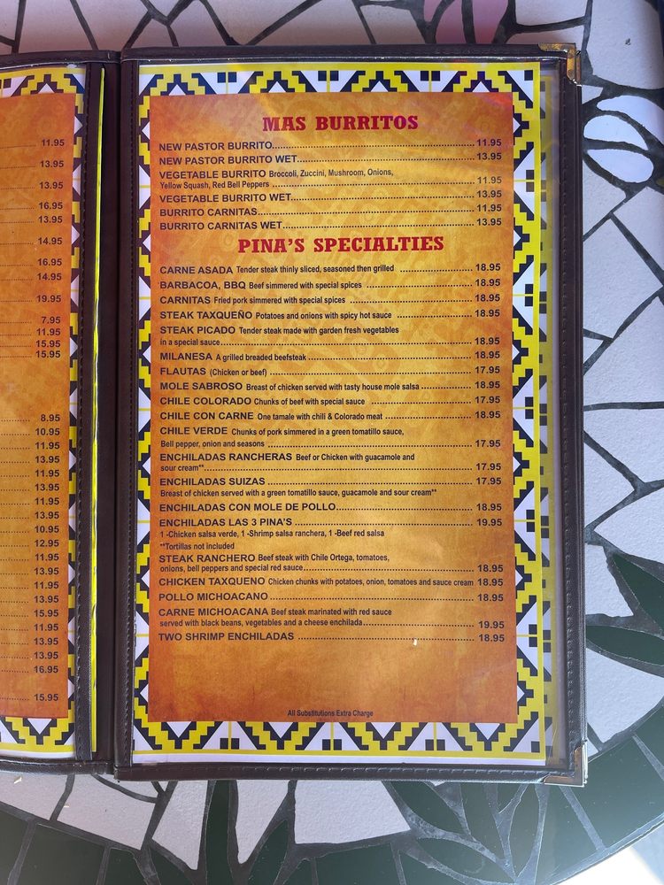 Discover the authentic flavors of Mexico at Pina's Mexican Restaurant located in San Pedro, CA. With a welcoming ambiance and attentive service reminiscent of home-cooked meals, Pina's is a delightful dining experience. The menu boasts a variety of breakfast options such as Chorizo con Huevos and Huevos Rancheros, satisfying appetizers like Nachos and Quesadillas, and comforting soups like Albondigas and Chicken Tortilla. Customers rave about the flavorful dishes including the Carnitas Burrito and Pork Pozole, highlighting the quality and taste that Pina's delivers. The generous portions ensure you leave satisfied, and the family-run establishment ensures a warm and inviting atmosphere. Bring your loved ones and enjoy a taste of Mexico at Pina's Mexican Restaurant.